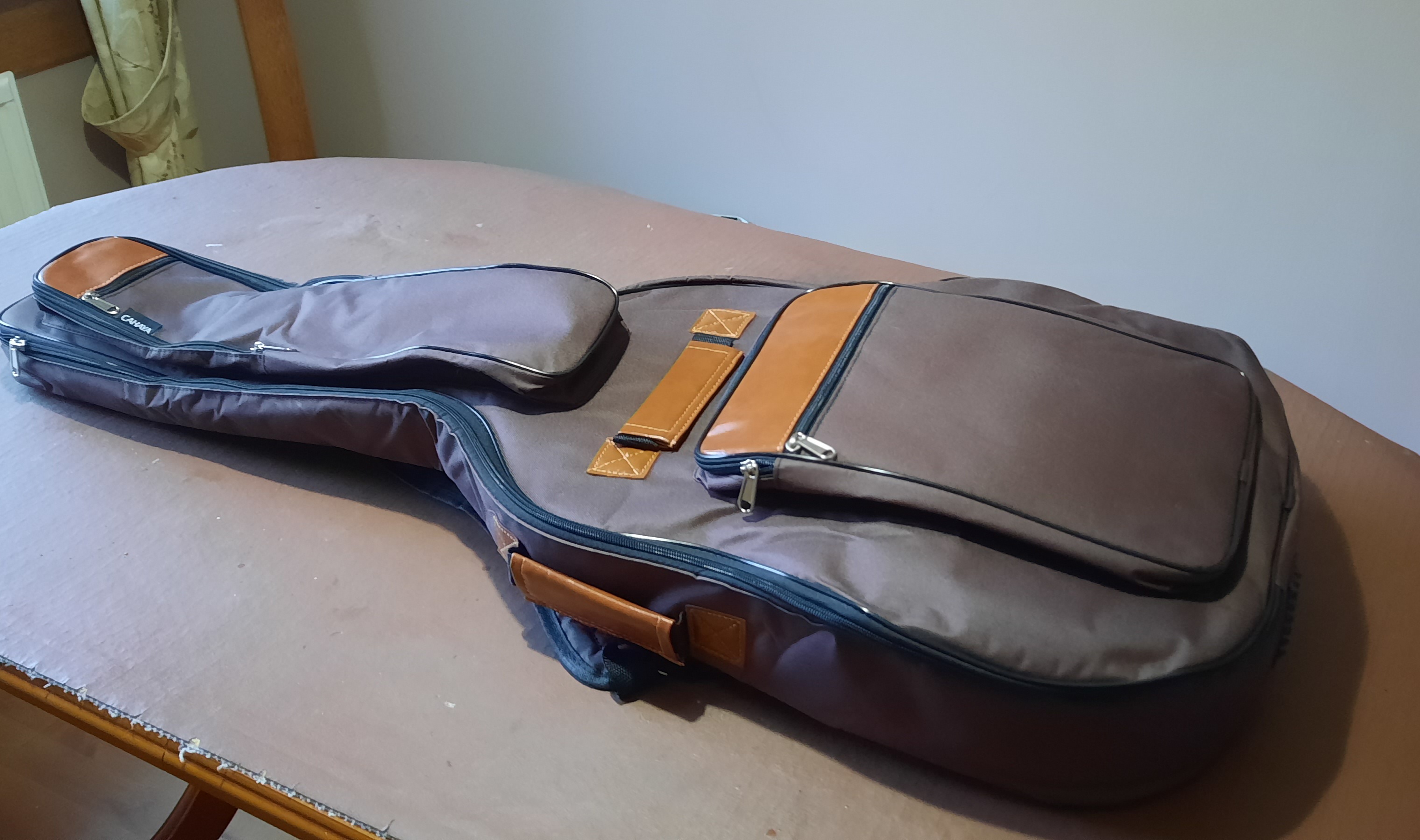 Solid Cedar top – Solid Mahogany back and sides – Mahogany neck – Solid maple wooden binding – Spalted beech headplate – Rosewood fingerboard- Rosewood bridge – Bone nut and saddle – Spalted design on headstock – Spalted rosette – Solid wooden scratch plate – Dual truss rod – Active Under saddle piezo pickup – French Polish finish – Cahaya Gig Bag or (added extra Hardcase)